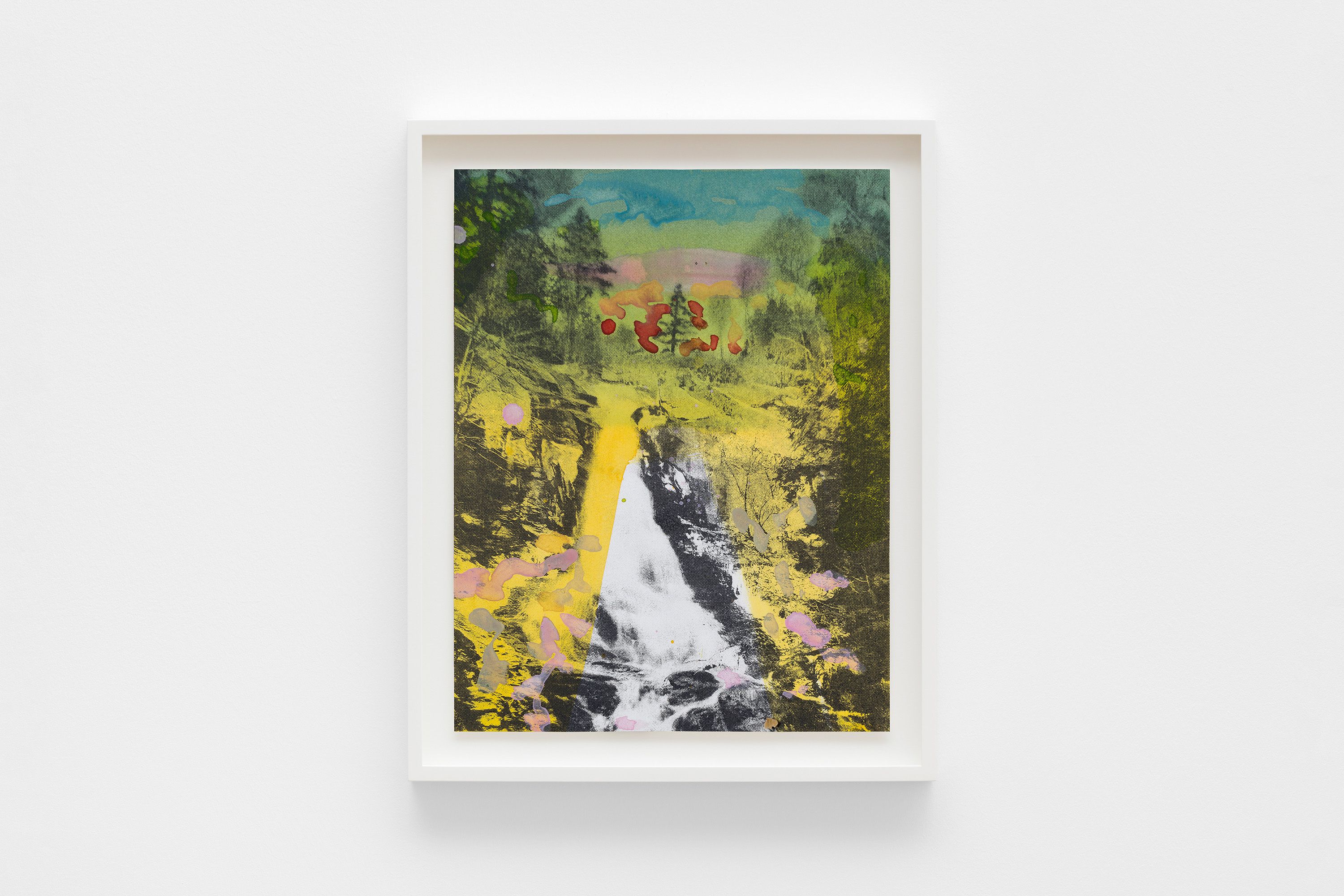 John Maclean Fall, 2025 Hand painted photographic silkscreen on watercolour brushed paper 36 x 28 cm 14 3/16 x 11 in.